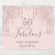 Simple and elegant 50th birthday wine label. A feminine rose gold, blush pink background decorated with rose gold faux glitter drips, paint dripping look. With the text: 50 and fabulous. Personalize and add a name and a date. Date of birth or the date of the party. Gray text. The word Fabulous is written with a modern hand lettered style script with swashes.