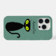 Mod kitty with green eyes and a teal background. If you have a different case, you may have to customize, so the camera doesn't cover your name. You can change the background colour. Personalize it or remove the name!