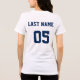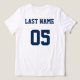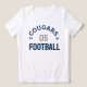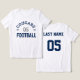 Custom Front and Back Football T-Shirt for Mom - shown in White Design for football moms features a football with sporty text that can be customized for the team name, son's last name, and his jersey number. Silver gray and navy blue colors can be customized.