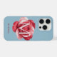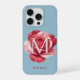 This personalized iPhone case features a richly detailed red rose layered behind a large custom initial for a bold, modern look. The soft dusty blue background keeps the design refined, while the oversized monogram adds a confident, custom touch.