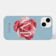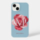 This personalized iPhone case features a richly detailed red rose layered behind a large custom initial for a bold, modern look. The soft dusty blue background keeps the design refined, while the oversized monogram adds a confident, custom touch.