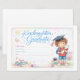A soft, playful graduation certificate layout designed for personalization, complete with spaces for name, school, teacher, and date to honor this meaningful step forward.