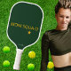 A sage green paddle featuring “Mom Squad” text at the center, with an optional name. The star icon highlights team pride. Ideal for leagues, gifts, or social play.