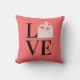Acolhedor enfeite decorativo moderno com almofada com AMOR e gráfico de doce bilhete de amor. Cores preto branco rosa poeirento cinza. Clique no botão "Personalize!" para torná-lo personalizado ou monogramado. Essas almofadas são ótimos presentes para homens, mulheres e crianças (e você também, claro!) Presente perfeito para casamentos aniversários ou apenas trate-se com essa adorável almofada.