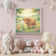 Featuring a cute baby bull standing among blooming wildflowers in a sunlit meadow, this artwork beautifully reflects the calm, loving, and grounded nature of Taurus.