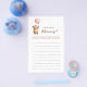 This adorable "Where Was the Mommy?" baby shower game features a sweet watercolor illustration of a baby bear holding a pink balloon. The text asks guests to guess where the mom-to-be was in each photo, with the person holding the most correct answers winning. It's a fun and engaging activity that adds a touch of whimsy to any baby shower celebration. The charming design is perfect for a woodland or bear-themed baby shower, creating lasting memories for the parents-to-be and their guests.
