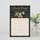 The moment we sketched that tiny bear hanging next to the overalls, we knew this was the ultimate cute factor! This dark green plaid bingo game brings a cozy, lumberjack-chic vibe to your baby shower. Let your guests guess the gifts and have some laughs while waiting for the little one’s arrival.
