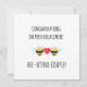 Este cartão de parabéns engraçado com trocadilho de amor de abelha fofo com tema de abelha é perfeito para enviar seus mais calorosos votos de noivado a um parente ou amigo noivo. Com um doce trocadilho de amor e sinceras felicitações de noivado, este cartão incorpora seus calorosos parabéns enquanto eles caminham em direção ao dia do casamento. As citações divertidas de noivado e o design inspirado em abelhas tornam-no uma escolha deliciosa para celebrar o amor deles. Na frente do cartão, está escrito calorosamente: “Parabéns pelo noivado. Casal bee-legal.” No verso, brinca: “Estou zumbindo de alegria com o seu noivado!” Você também pode personalizar este cartão para o seu familiar ou amigo que está noivo, tornando-o ainda mais especial e significativo. Este cartão é a combinação perfeita de sinceras felicitações e um toque de capricho, tornando-o