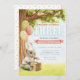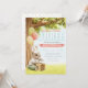 Comemore o terceiro aniversário do seu filho com este belo convite de aniversário de coelhinhos. A design apresenta um coelho bebê sentado debaixo de uma árvore, abrindo um presente de aniversário. O convite tem um texto que diz: "Alguns coelhos estão fazendo TRÊS." A que está em todos os bonés com um padrão de polkadot. A parte de trás do convite tem o mesmo padrão de polkadot. Você pode personalizar com todos os detalhes da festa. O nome do seu bebê é mostrado em uma faixa vermelha.