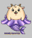 A whimsical cartoon-style illustration of a cheerful Capricorn creature. The top half is a fluffy, light beige goat with expressive black eyes, tiny horns, and a joyful smile. It wears a ruffled, iridescent purple top that transitions into a shimmering, deep purple fish tail. Rendered in a soft, slightly textured style reminiscent of children’s book illustrations, the character is brightly lit against a solid black background, emphasizing its playful and magical design. Perfect for zodiac-themed products, gifts, posters, apparel, and home décor.
