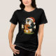 Adorable penguin in a Santa hat holding a gift box, surrounded by glowing trees—perfect for cute Christmas apparel, mugs, and festive decor!