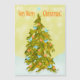 Cute Christmas tree with blue birds, winter day background, watercolor painting.