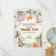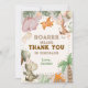 Envie um "obrigado" doce e pré-histórico com este adorável cartão de agradecimento de aniversário de dinossauro! Com dinossauros amigáveis em aquarela, balões pastel, folhas da selva, ovos de dinossauro e um vulcão alegre, este cartão combina perfeitamente com a festa de aniversário temática de dinossauro do seu filho. Este cartão dá ao seu filho uma maneira divertida e pessoal de agradecer amigos e familiares por celebrarem seu dia especial. A paleta de cores pastéis suaves e os dinossauros pintados à mão tornam este cartão de agradecimento perfeito para crianças pequenas, pré-escolares e qualquer criança que ama dinossauros. É o toque final perfeito para um tema de aniversário "Stomp, Chomp, Roar" ou dinossauro pastel!