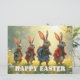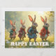 A delightful Easter scene featuring four adorable bunnies walking through a sunny spring meadow. Dressed in charming outfits, they bring warmth, joy and a playful atmosphere perfect for celebrating Easter and the beauty of the season.