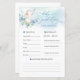 Este design fofo e moderno em estilo boho para Jogo de Previsões e Conselhos para Bebê - engraçado jogo de Chá de Bebê para menino apresenta um adorável elefante bebê pintado à mão com aquarela sentado sobre uma coroa de folhagens frescas de eucalipto e flores azuis empoeiradas - o que torna este conjunto adequado para um Chá de Bebê de menino.