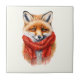 Ceramic tile with an adorable illustration featuring a cute little red fox face with a red scarf wrapped around his neck.
