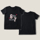 Make your little one's day extra special with this adorable "6 Six 7 Seven" number-themed t-shirt. This creative design features the numbers six and seven filled with a trendy pink and white plaid (checkered) pattern, perfectly accented by charming pink hearts floating around the text. The playful combination of bold typography and soft, aesthetic patterns makes this tee a fantastic choice for kids' birthday celebrations, school events, or casual everyday wear. Designed specifically for children's fashion, the vibrant pink elements pop brilliantly against the classic black fabric, offering a stylish and cheerful look that any child will love. It makes a wonderful and unique gift for young fans of pastel colors and cute graphic art.