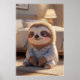 Adorable sleepy sloth wearing cozy pajamas in a warm bedroom setting. Perfect for calm vibes, bedtime decor, cute stickers, and anyone who loves slow, peaceful energy.