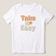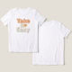 Give yourself permission to slow down and relax with this cheerful "Take It Easy" graphic. Featuring a playful, bubbly font in warm, sunny colors and accented with a cute, smiling sun, this design is all about embracing a laid-back attitude. It's the perfect reminder to find your calm, enjoy the moment, and soak up some good vibes.