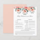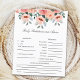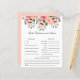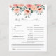 Diseño para juego de predicciones del bebe con tematica floral linda y elegante con flores pintadas en acuarela con tonos rosas y durazno. Este es un juego perfecto para jugar durante el baby shower y sin duda será un gran placer. La tarjeta pide a los invitados que predigan cómo sería el bebé.