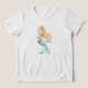 This charming watercolor illustration shows a gentle mermaid girl with long flowing blonde hair decorated with pearls and delicate flowers. Her calm expression, soft pastel tones, and graceful underwater pose create a peaceful and dreamy ocean fairytale mood.