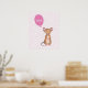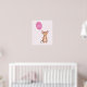 NewParkLane - Poster, with a cute woodland mouse in watercolor, with a pink balloon, for your name or other personal text, against a baby pink striped background.
