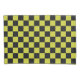 Yellow and black checkerboard pattern with alternating squares. The bold contrast creates a striking, geometric visual effect.