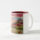 Da " ilha eternidade: Caneca da montanha do por do sol" 11 onças. Imagem do CD do mesmos aguarela original do nome por Jude Wiesenfeld (direitos reservados). O interior da caneca é cor vermelha do sangue.
