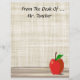 Personalize facilmente este artigo personalizado de papel timbrado da Mesa de... com qualquer nome. Ou, simplesmente, deixe de fora o texto, apagando-o. Uma maçã vermelha com ilustração verde em folha sobre uma mesa de madeira está no canto inferior. Uma roupa clara bege adiciona um papel de parede texturizado ao fundo. Muito espaço de cópia a ser gravado mais tarde. Excelente de presente pessoal para professores, médicos, enfermeiros, profissionais de saúde, etc. Lembre-se, "Uma maçã por dia, mantém o médico longe!"