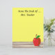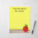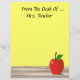 Personalize facilmente este artigo personalizado de papel timbrado da Mesa de... com qualquer nome. Ou, simplesmente, deixe de fora o texto, apagando-o. Uma maçã vermelha com ilustração verde em folha sobre uma mesa de madeira está no canto inferior. Muito espaço de cópia a ser gravado mais tarde. Mostrada é uma cor de fundo amarela clara. Excelente de presente pessoal para professores, médicos, enfermeiros, profissionais de saúde, etc. Lembre-se, "Uma maçã por dia, mantém o médico longe!"