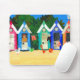 Um mousepad brilhante e alegre, decorado com uma colagem de papel pintado à mão de cabanas da praia.