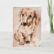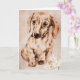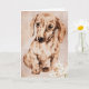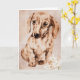 Cartão do aniversário dos amantes do Dachshund com trabalhos de arte de um dachshund marrom contra um fundo tan com edelweiss na parte inferior. Personalize o texto dentro do cartão para serir suas necessidades.