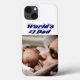 Phone case with World's number 1 dad in 3D dark blue text. Customize it with your own photo. Available for several phone styles.