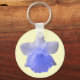 Este bonito chaveiro floral apresenta uma bela macro foto de um Daffodil mostrando esta planta em detalhes após um chá de chuva. A flor foi colorida artificialmente, resultando em pétalas externas brancas atordoantes com veias azuis e num trompete azul claro bonito. A foto é tão detalhada que você pode ver as pequenas gotículas de água sobre a flor. O fundo é amarelo pálido.