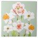 A design neste produto é baseada em quatro pinturas de Daffodils por mim. Eles florescem na primavera depois que a neve derrete. A primavera já acabou, mas agora você pode saborear seu charme o ano inteiro com este produto! Observe que este azulejo está disponível em dois tamanhos.