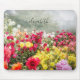 Um belo campo de dália floresce em fúcsia, rosa médio, branco, pêssego e amarelo, contra um céu de cinza sonhador. Personalize com seu nome ou mensagem na fonte do script de cinza escuro.