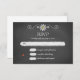 Cartões RSVP de casamento do estilo 'chalkboard' rústico da cinza escura com margarida e amaldiçoados florescem no topo, joaninha fofa e tipografia personalizável mista por katz_d_zynes | Parte da coleção de Casamentos Rustic Chalkboard de Katzdzynes' Daisies e Ladybugs >> https://www.zazzle.com/collections/119167309747130479