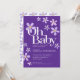 Um convite para chás de fraldas bonitinho de flores da margarida, com flores pintadas à mão soltas, em fundo roxo. Personalize com seus próprios detalhes de chá de fraldas. © Flores de margarida pintadas exclusivamente em guache e desenhadas por Sarah Trett exclusivamente para www.mylittleeden.com