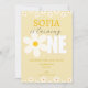 Bem-vindo à primeira comemoração de aniversário da sua criança com este divertido e cheio de margarida Convite de Primeiro Aniversário! Perfeito por avisar a todos sobre a próxima festa, é certamente um buquê de alegria para todos os convidados!