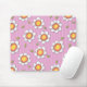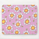Daisy pintada e alegre ou margaridas brilhantes espalhadas alegremente contra listras chantilly rosa.