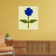 Este impressão bonito apresenta uma imagem digital de uma margarida com um caule verde com duas folhas verdes sobre ele e pétalas claras e azuis escuras com um centro azul claro. O fundo é amarelo-sol com uma bela borda azul. O design está disponível em vários tamanhos diferentes de impressão, sendo o maior mostrado aqui.