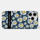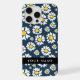Padrão elegante, na moda e sofisticado com flores brancas margaridas sobre fundo azul marinho. Presente moderno e moderno, perfeito para o amante floral de design na sua vida. Personalize adicionando o seu nome, apelido, monograma ou iniciais.