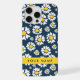 Padrão elegante, na moda e sofisticado com flores brancas margaridas sobre fundo azul marinho. Presente moderno e moderno, perfeito para o amante floral de design na sua vida. Personalize adicionando o seu nome, apelido, monograma ou iniciais.