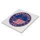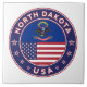 Crachá de Dakota do Norte com bandeira de Dacota do Norte e bandeira de cores dos EUA, forma arredondada. Emblema de Dakota do Norte. Selo de Dakota do Norte. Coleção dos Estados Unidos.