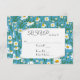 Papel branco enrolado em uma dália branca e design turquesa para RSVP de casamento. Todo o texto é editável.