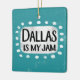 "Dallas Is My Jam" é um design de texto divertido com uma forma de sotaque branca cercado por pontos brancos texturizados.