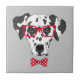 Características que deste design um retrato tirado mão do Dalmatian se vestiu em vidros e no laço vermelhos do design do coração.