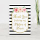Cartão de agradecimento para dama de honra em padrão de listras clássicas preto e branco com detalhes dourados e flores rústicas em aquarela rosa e pêssego vintage, a maneira perfeita de mostrar seu apreço à sua comitiva de noiva. Disponível em convites combinando e uma ampla seleção de outros produtos de casamento.