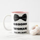 Adequada para a Noiva Homem ou Dama de Honra do Noivo, adicione o nome delas e a data do seu casamento a esta clássica Caneca de Casamento preta e branca para Damas de Honra