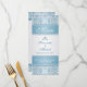 Cor damasco azul clara em um cartão Rack do Menu Casamento com gradiente prateado. Os itens correspondentes são mostrados abaixo:
